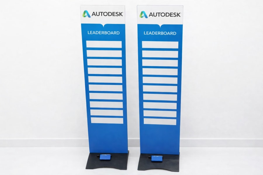 A branded leaderboard is a custom display used to track scores during games or competitions at your event. It adds a competitive element while showcasing your company branding, making it perfect for exhibitions, corporate events, and brand activations.