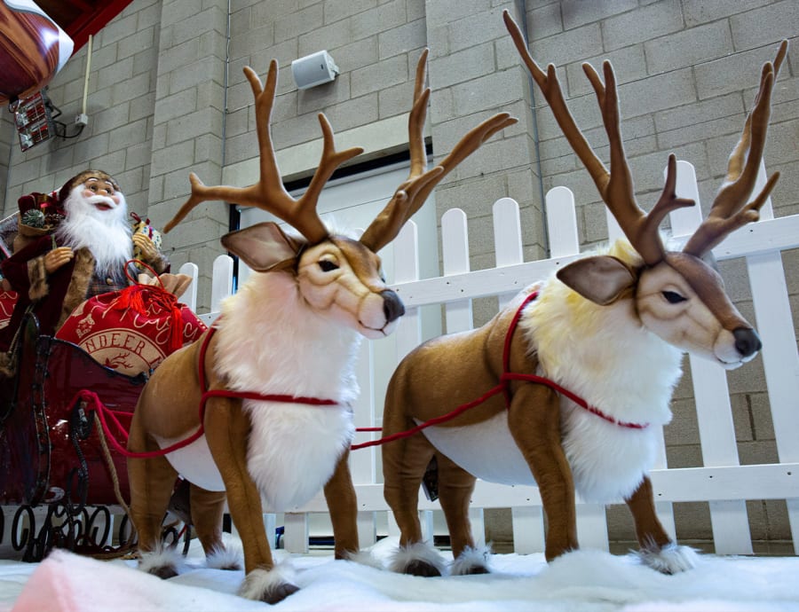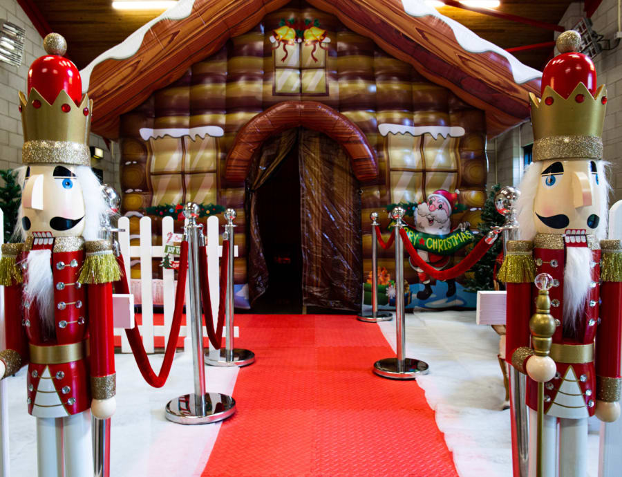 Your hire includes a fully immersive setup featuring a inflatable grotto, Santa’s throne, electric log fire, red carpet entrance, nutcrackers, christmas trees with faux presents, 2x lamp posts, plush reindeers, Santa’s sleigh, north Pole sign, snowy ground, and a white picket fenced area. A 13amp socket is required within 30m for power.