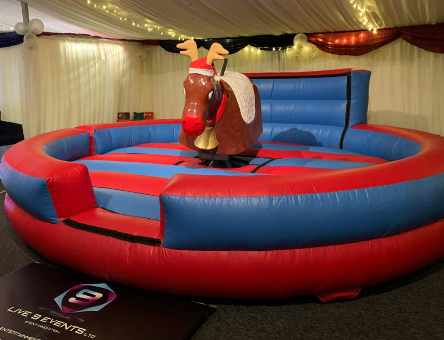 Live 9 Events are proud to supply this Bucking Reindeer Hire from our Christmas Entertainment Hire range. Perfect for Christmas parties, winter events, corporate celebrations and festive fun days, this hilarious festive attraction puts a seasonal spin on the classic rodeo experience.