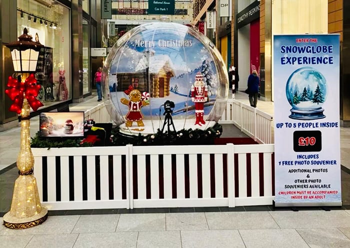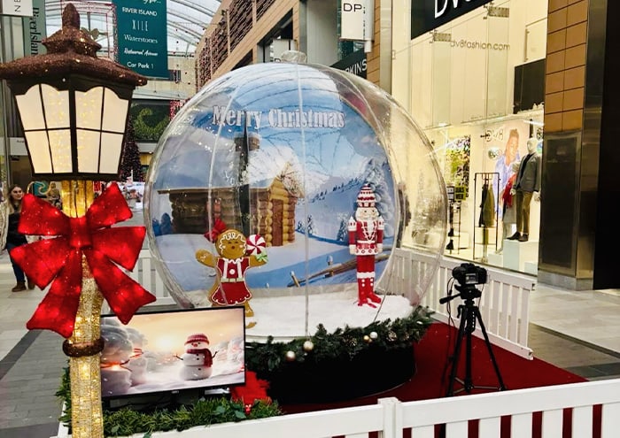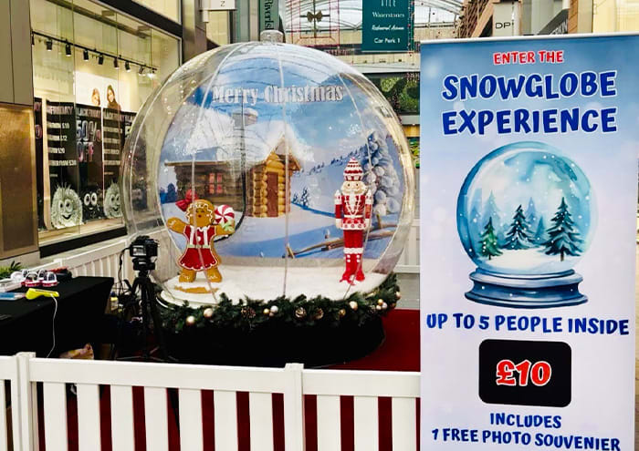 Our giant snow globe hire is perfect for creating magical Christmas events, these enchanting globes provide fantastic photo opportunities and allow guests to step inside, creating unforgettable memories. Ideal for shopping centres, corporate events, company parties, weddings and even community events. Step inside and be transported to a winter wonderland, perfect for family photos and festive fun. Hiring a giant snow globe is an excellent way to draw attention at any event, offering a unique and interactive experience that will leave your guests spellbound and full of holiday cheer.