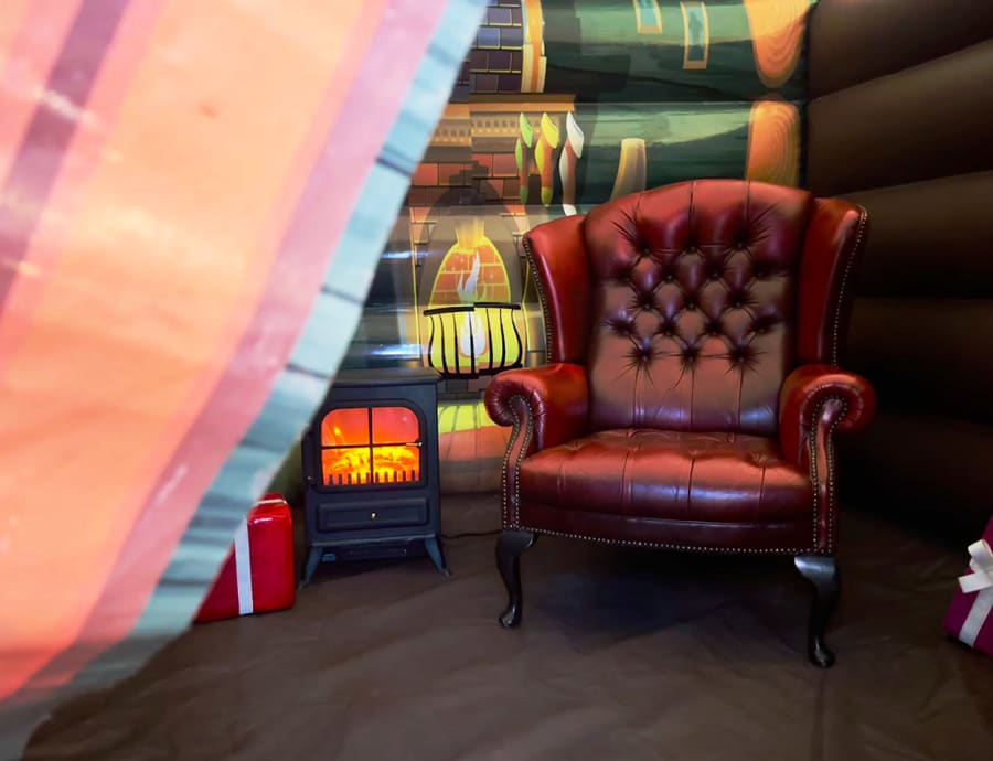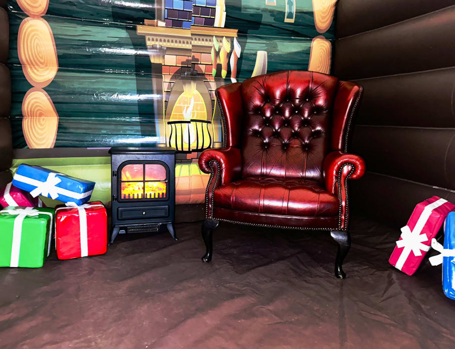 This inflatable grotto features a traditional festive design that creates a warm and welcoming Christmas atmosphere without the need for large ceiling heights. Carefully styled with seasonal décor and props, it provides an inviting backdrop that instantly sets the festive scene and draws guests in, making it ideal for indoor venues and smaller event spaces.