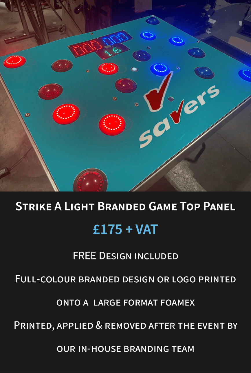 A branded game version is particularly popular for exhibitions, product launches and promotional campaigns where a strong visual presence is important. For more information or to request a quote, please visit our Branded Strike a Light Game page.
