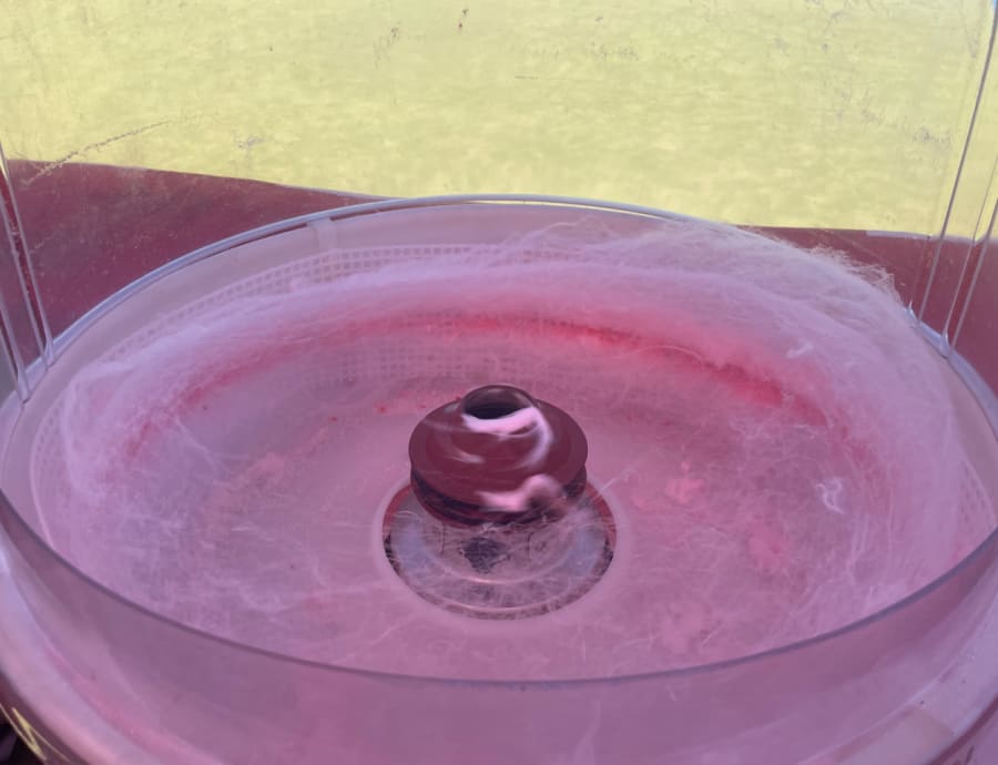 Can you resist the smell and taste of this fresh cotton candy? Watch as the wheel spins, turning sugar into delicious floss right in front of your eyes!