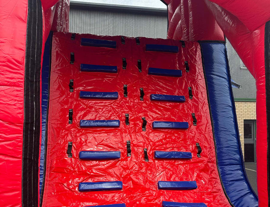 Why not take on the challenge of our Mega 100ft Assault Course, full of laughter and competitiveness? Dive through the holes, dodge the bish bash, stumble over the hump, dodge more bish bash, and power through the entry mangles and cross pieces before coming head-to-head with the big red balls challenge. Jump from ball to ball without falling. Almost there, stumble up the steps to the 10ft platform and slide to victory!