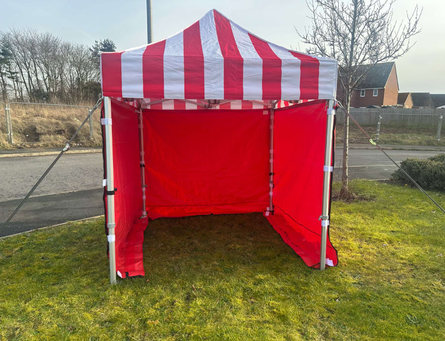Live 9 Events Are Proud to Supply this 2x2m Red and White Striped Mini Marquee from our Marquee Hire range.