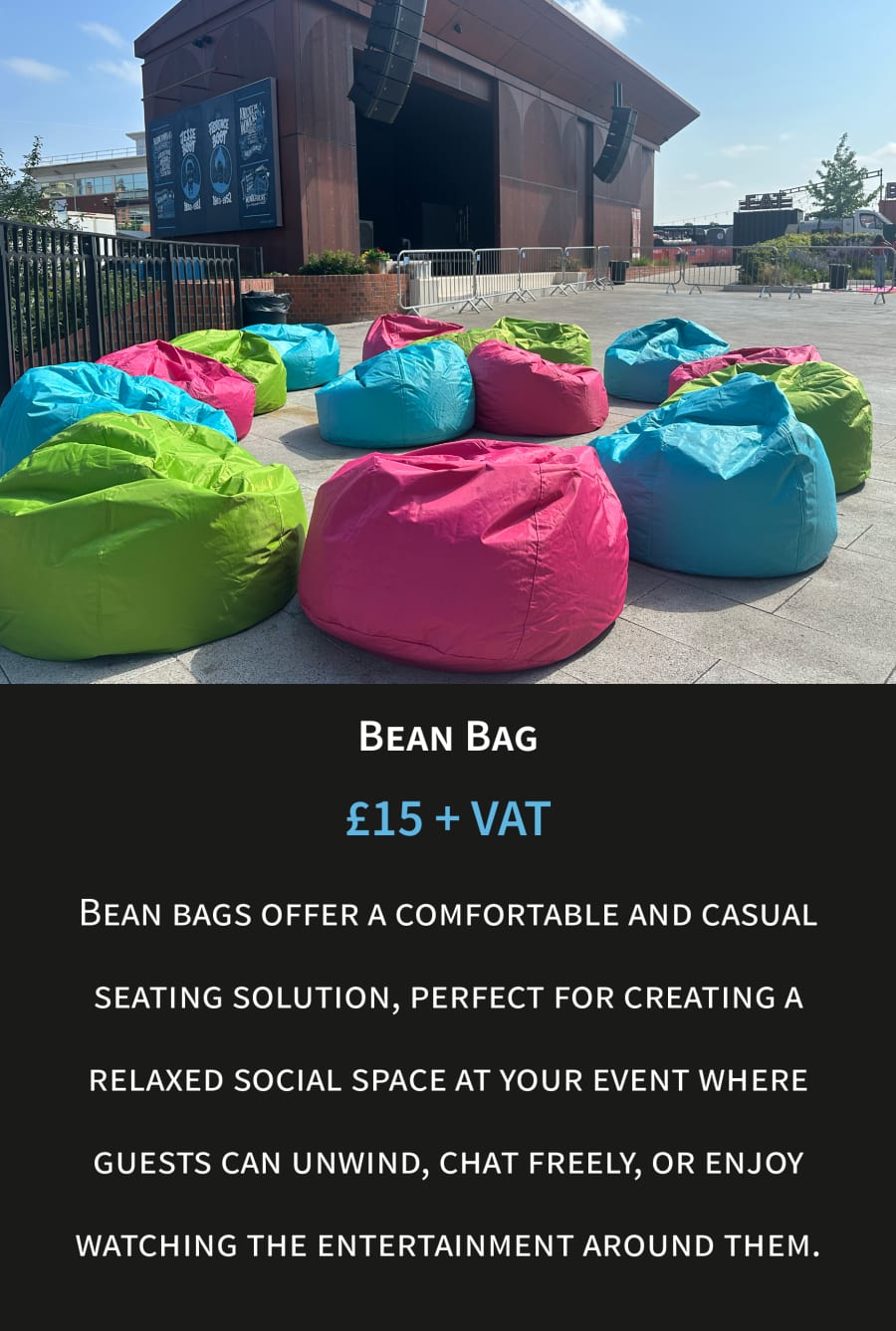Access Requirements: If you believe that access or set up area may be a problem due to uneven surfaces, long distance to set up area, obstructions, or other variables, please let us know in your enquiry.