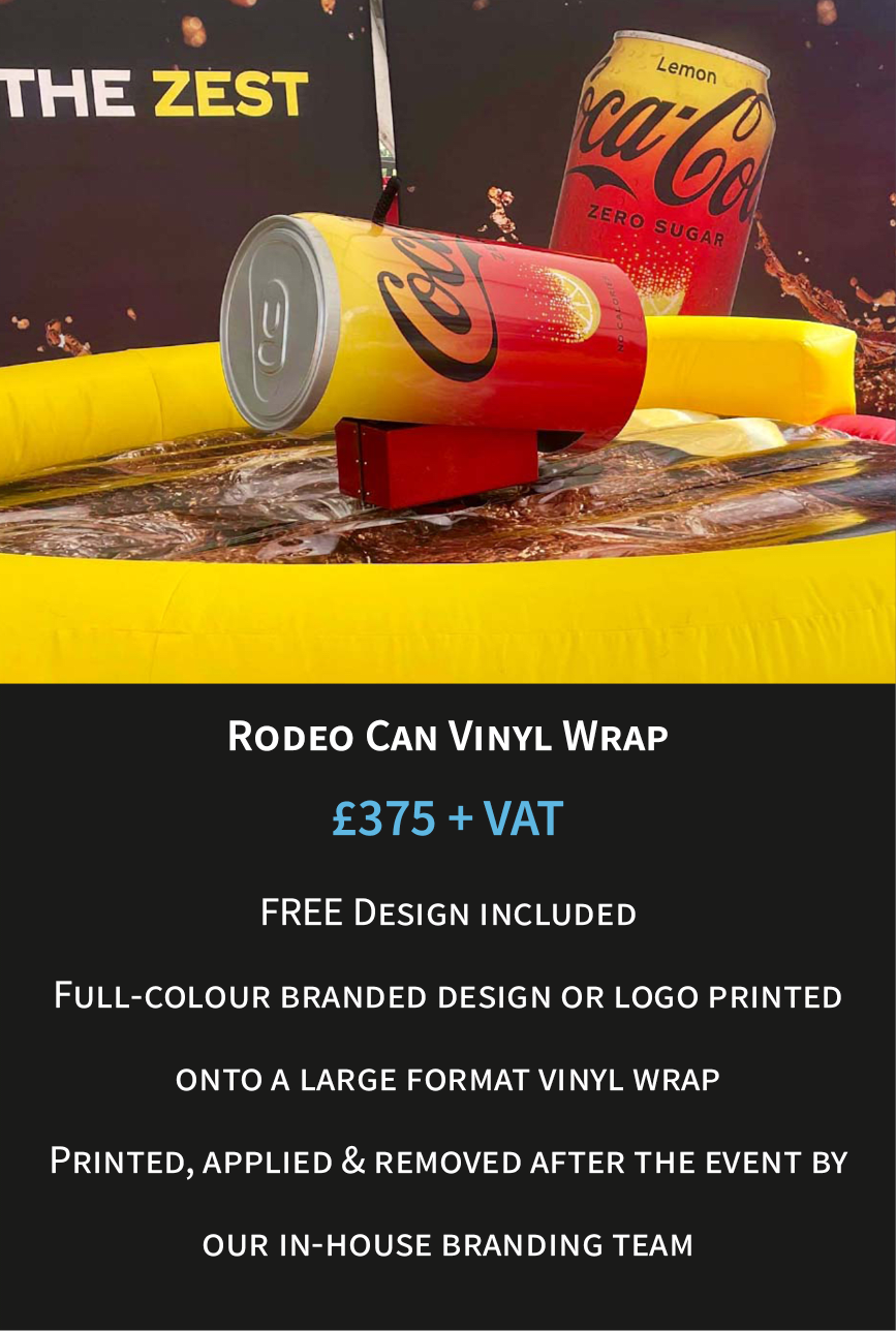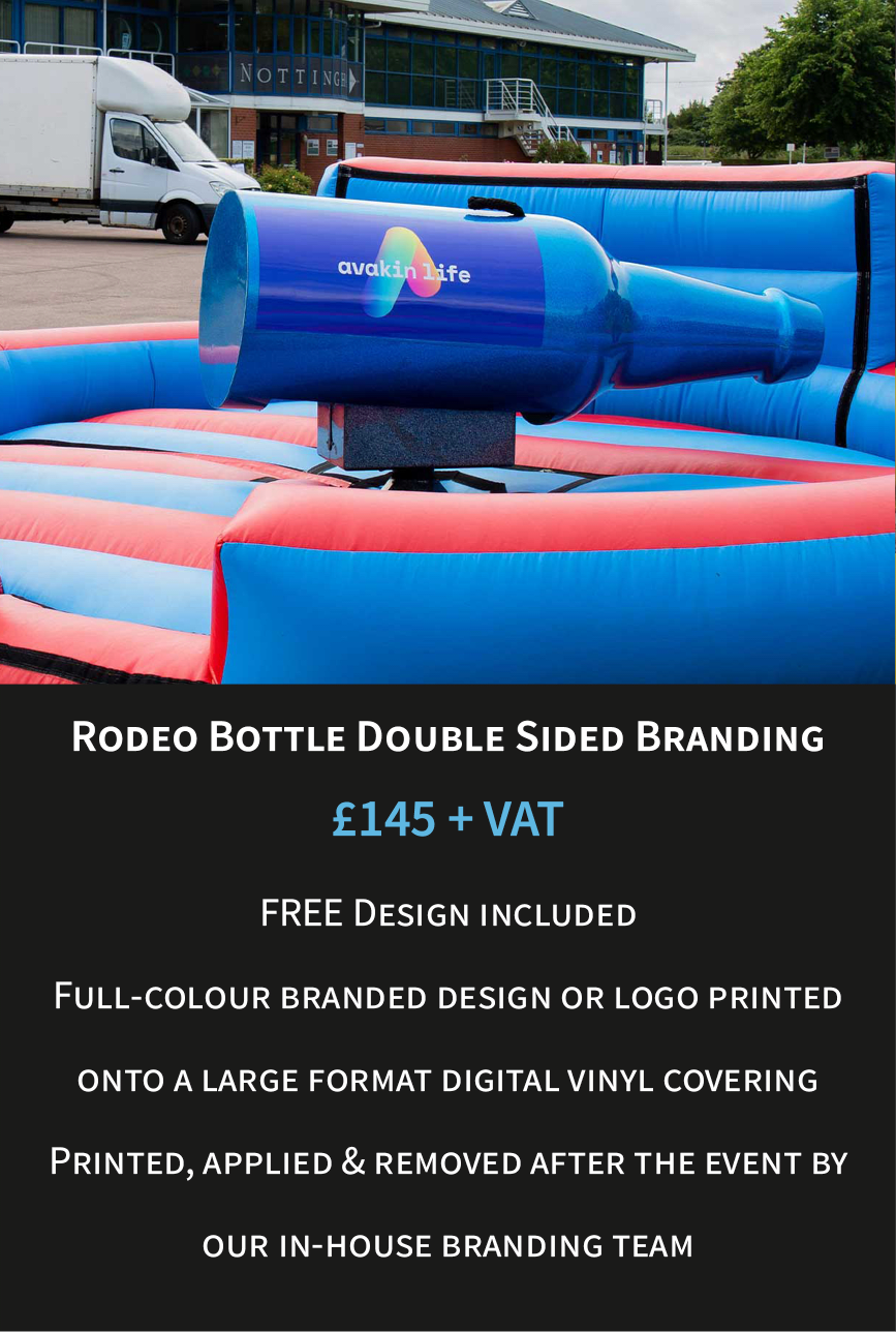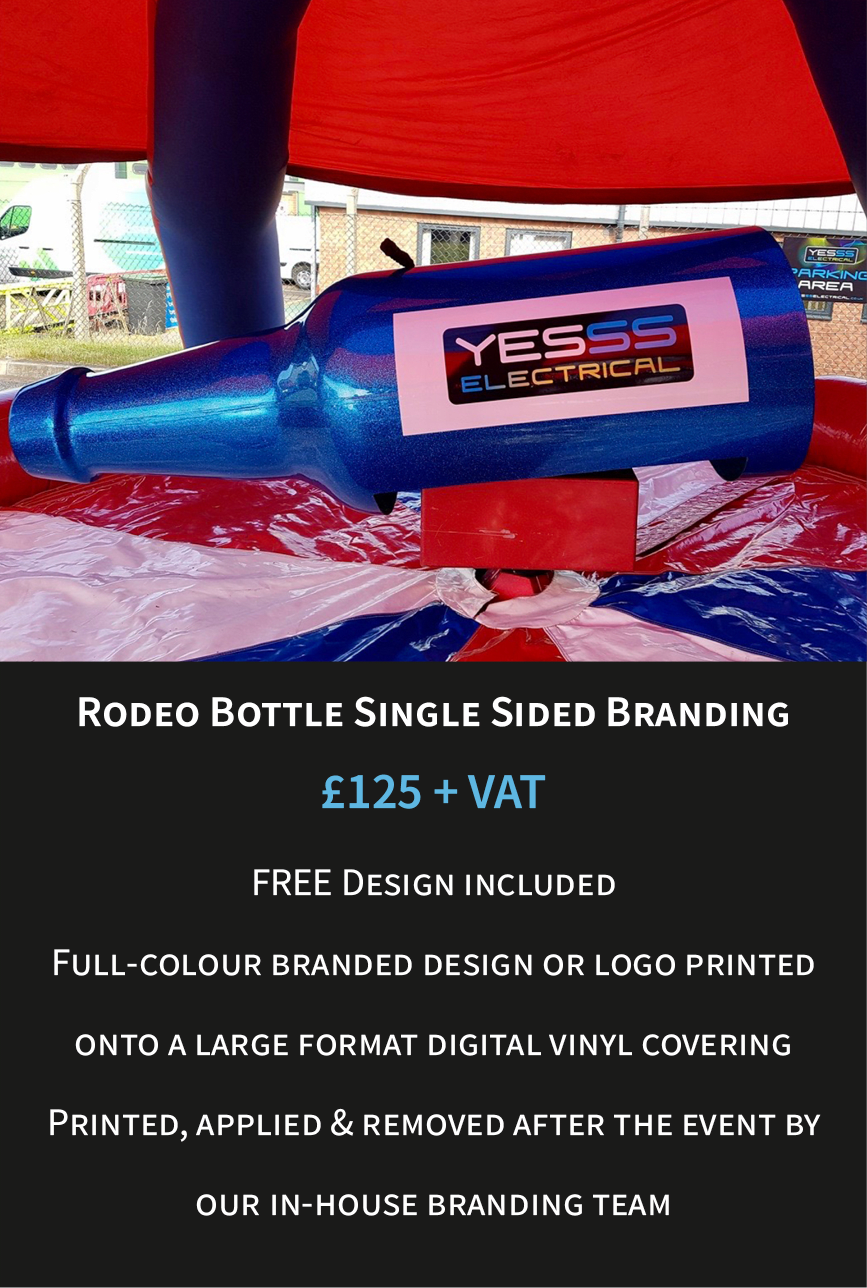 Your bespoke rodeo can be customised in multiple ways, including a fully branded rodeo attachment, inflatable bed and even additional elements such as the control box cover, safety mat and signage. This creates a seamless, high-impact branded attraction that stands out at any event.