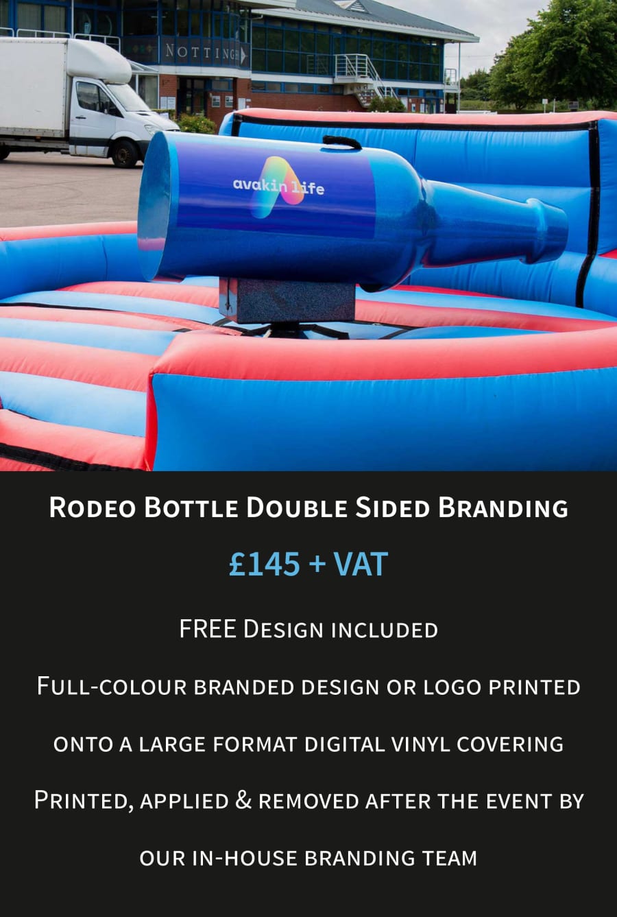 Delivery of our Rodeo Bulls and Simulator Hire is available across the whole of the UK, we serve Nottingham, Milton Keynes, Coventry, Manchester, Bristol, Cheltenham and many more locations. Our rodeo bottle can also be branded and has featured at locations in Sheffield, Surrey and even Central London for events. For bucking bronco hire we are able to cover the whole of the UK on request. Minimum order charges and delivery fees apply to all areas.