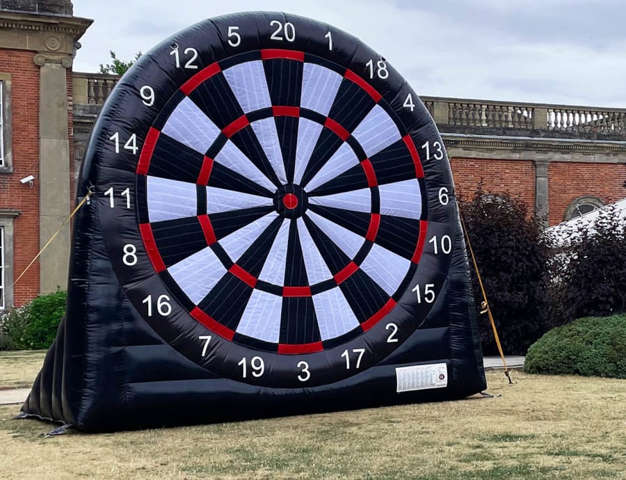 Golf Darts Hire is a fun and interactive game that combines elements of golf and darts. Players chip velcro golf balls onto a giant inflatable dartboard, aiming to score points based on where the ball lands.
