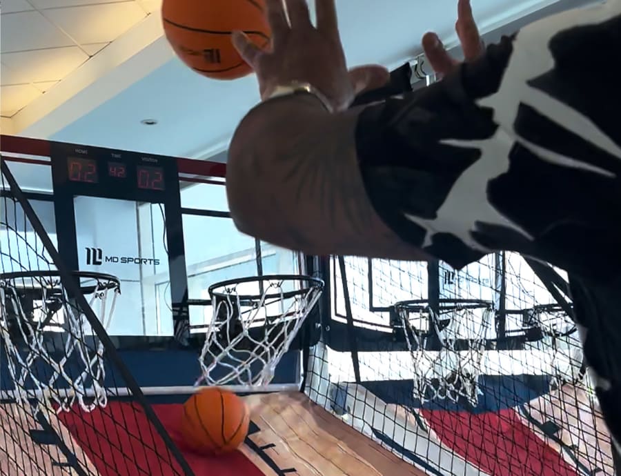 Make sure you’re ready, because you’ve got only 30 seconds to score as many baskets as possible, with your opponent firing just as fast beside you. The integrated scoreboard will count your baskets as you go, but try not to get distracted – just focus on shooting as many hoops as possible!