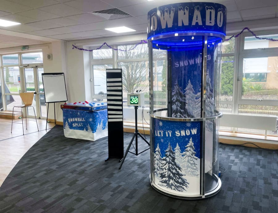 Live 9 Events offers Snownado Hire across the entire UK, supported by our committed delivery team offering hire from London to Manchester, we're specialists at keep your guests happy on your event day. Ideal for community events, corporate events, christmas parties, exhibitions, product launches or trade shows, our cash grabbing games for hire are a hit!