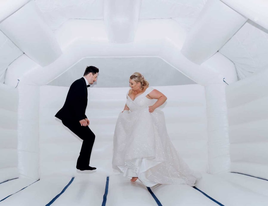 This white bouncy castle is as elegant as it is fun and is great for wedding guests of all ages. Its deep bed and very high walls mean that adults can join in on the fun!