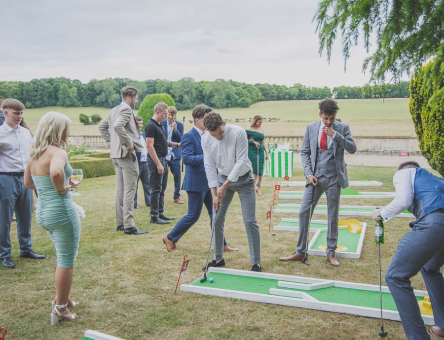 Our White Wedding Castle, which will be a hit with your guests and keep them entertained the entire evening, is available to people of all ages and our 9-hole crazy golf is a great addition to your wedding and is fun for people of all ages and turns into a great social activity.